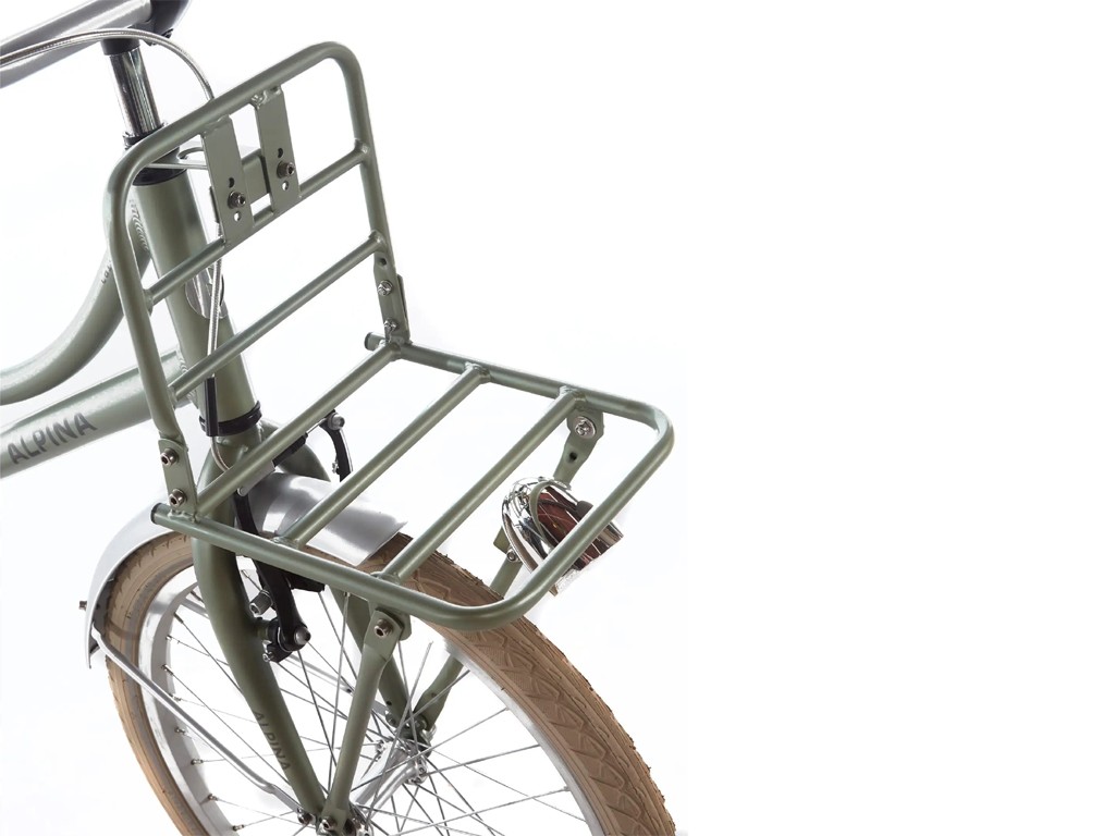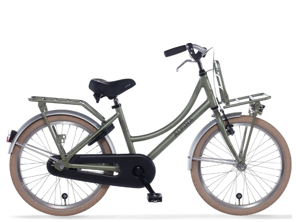 Nieuwe trendy meisjesfiets met voordrager, gesloten kettingkast, batterij LED-verlichting voor en achter en een slot.